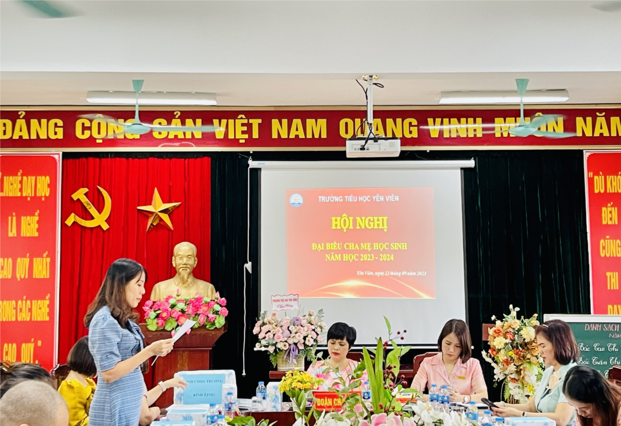 Với mong muốn nhận được sự đồng hành của phụ huynh cùng giáo viên và nhà trường cho một năm học mới thành công, chiều ngày 23/09/2023 trường Tiểu học Yên Viên tổ chức Hội nghị Đại biểu Cha mẹ học sinh năm học 2023-2024 nhằm thống nhất triển khai công tác phối hợp thực hiện nhiệm vụ năm học. Tham dự Hội nghị có đại diện cha mẹ học sinh của 18 lớp cùng quý thầy cô trong Ban giám hiệu và toàn thể giáo viên chủ nhiệm các lớp trong toàn trường.